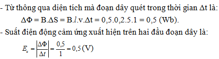 ΔΦ = B.ΔS = B.l.v.Δt = 0,5.0,2.5.1 = 0,5 (Wb).