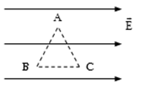 Điện tích q = 10-8 C di chuyển dọc theo các cạnh của tam giác đều ABC cạnh a = 10 cm trong điện trường đều cường độ điện trường là E = 300 V/m, \( \overrightarrow E //BC \). Tính công của lực điện trường khi q di chuyển trên mỗi cạnh của tam giác: