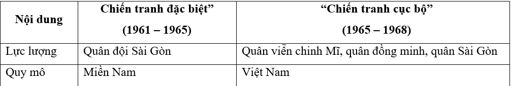 *Bảng so sánh chiến lược “Chiến tranh đặc biệt” (1961 – 1965) và chiến lược “Chiến tranh cục bộ” (1965 – 1968)