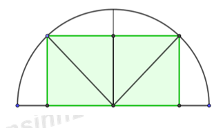 Diện tích lớn nhất \({{S}_{\max }}\)của một hình chữ nhật nội tiếp trong nửa đường tròn bán kính \(R=6cm\)nếu một cạnh của hình chữ nhật nằm dọc đường kính của hình tròn mà hình chữ nhật đó nội tiếp.