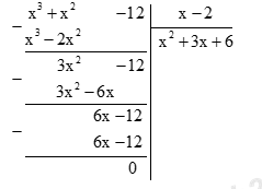 Điền vào chỗ trống: \( \left( {{x^3} + {x^2} - 12} \right): \left( {x - 2} \right) = ..... \)