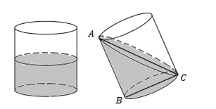 Vì mặt nước tạo với đáy thùng một góc 450 nên \(\widehat {ACB} = {45^0} \Rightarrow \Delta ABC\) vuông cân tại B.