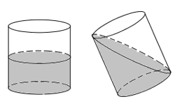 Đổ nước vào một chiếc thùng hình trụ có bán kính 20cm. Nghiêng thùng sao cho mặt nước chạm miệng thùng và đáy thùng (như hình vẽ) thì mặt nước tạo với đáy thùng một góc 450. Thể tích của thùng là: