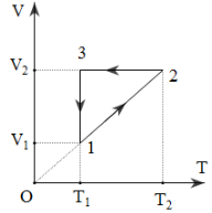 + Từ \(T{T_1} \to T{T_2}\): quá trình đẳng áp ta có: