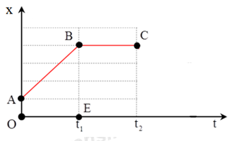 Đồ thị tọa độ - thời gian trong chuyển động thẳng của chất điểm có dạng như hình vẽ. Trong khoảng thời gian nào chất điểm chuyển động thẳng đều?