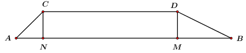 Gọi \(M,\,\,N\) lần lượt là hình chiếu vuông góc của \(D\) và \(C\) trên \(AB.\)