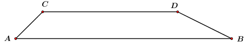 Đoạn đường AB dài \(5\,km,\) thường xuyên bị ùn tắc nên thời gian xe mô tô đi hết đoạn đường này mất khoảng 30 phút. Do vậy người ta xây một tuyến đường mới trên cao đi từ A đến B qua C và D như hình vẽ.