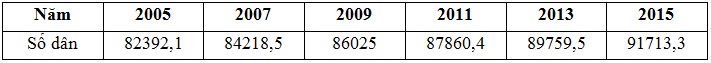 Cho bảng số liệu: Dân số Việt Nam giai đoạn 2005 – 2015