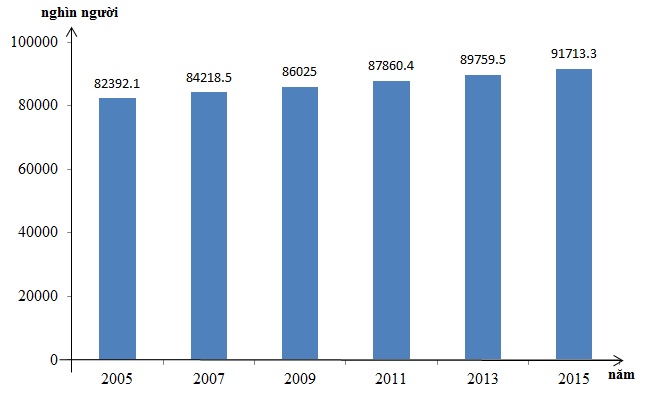 Biểu đồ thể hiện tình hình dân số Việt Nam giai đoạn 2005 – 2015.