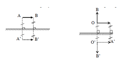 Dựa vào tính chất ảnh của vật tạo bởi gương phẳng, hãy vẽ ảnh của vật sáng AB (Hình 1) và vật sáng AOB (Hình 2)
