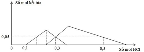 +) Tại nHCl = 0,5 mol thì kết tủa tan 1 phần