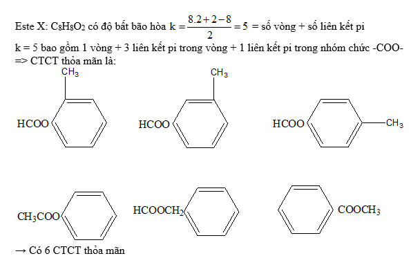 Este X có chứa vòng benzen có công thức phân tử là C8H8O2. Hãy cho biết X có bao nhiêu công thức cấu tạo?