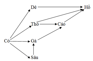 Giả sử lưới thức ăn trong quần xã sinh vật được mô tả như sau: cỏ là thức ăn của thỏ, dê, gà và sâu; gà ăn sâu; cáo ăn thỏ và gà; hổ sử dụng cáo, dê, thỏ làm thức ăn. Có bao nhiêu phát biểu sau đây đúng về lưới thức ăn này?