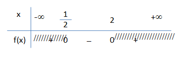 Nhờ bảng xét dấu ta có nghiệm của bất phương trình là   < x < 2