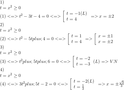 Với điều kiện nào của m thì các phương trình sau vô nghiệm: