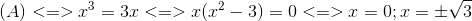 Vậy (A) có 3 nghiệm (0;0) ; (√3; √3);(- √3;- √3)