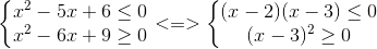 left{ egin{matrix} x^{2}-(m+1)x+2(m-1)leq 0 x^{2}-(m+2)x+3(m-1)geq 0 end{matrix}