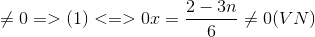 +) 2 - 3n = 0 <=> n = => 0x = 0 => Vô số nghiệm