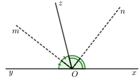 Gọi \(On\) và \(Om\) là tia phân giác của hai góc kề bù \(\angle xOz\) và \(\angle zOy\).