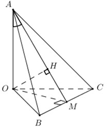 \(\left\{ \begin{array}{l}BC \bot OM\\BC \bot OA\end{array} \right. \Rightarrow BC \bot \left( {OAM} \right) \Rightarrow BC \bot OH\).