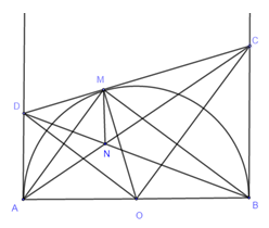 Mà có: \(\left\{ \begin{array}{l}AD = DM\\BC = MC\end{array} \right.\left( {cmt} \right) \Rightarrow \frac{{DM}}{{MC}} = \frac{{DN}}{{NB}}\)
