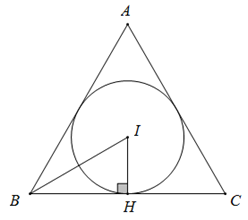 \(\frac{r}{R} = \frac{{IH}}{{IB}} = \sin \angle IBH = \sin 30^\circ = \frac{1}{2}\)