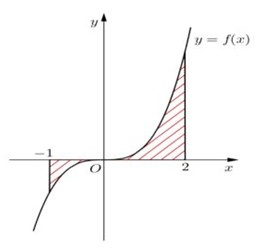 Dựa vào hình vẽ ta có được: \(S = \int\limits_{ - 1}^0 {(0 - f(x))} + \int\limits_0^2 {f(x)} = - \int\limits_{ - 1}^0 {f(x) + } \int\limits_0^2 {f(x)} = b - a\)