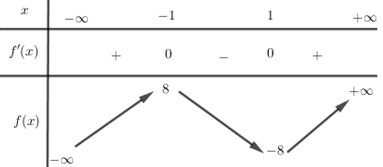 Từ bảng biến thiên ta thấy, phương trình đã cho có đúng hai nghiệm \( \Leftrightarrow \left[ \begin{array}{l}m = 8\\m = - 8\end{array} \right.\).