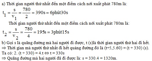 a) Nếu hai người đi không nghỉ thì sau bao lâu sẽ đến một điểm cách nới xuất phát 780m?
