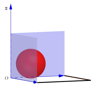 Giả sử \(M\left( x;y;z \right)\) nằm trên mặt cầu (bề mặt của quả bóng) sao cho \(d\left( M;\left( Oxy \right) \right)=1,\,\,d\left( M;\left( Oyz \right) \right)=2,\,\,d\left( M;\left( Oxz \right) \right)=3\)