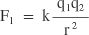 Lực tương tác điện giữa 2 điện tích có độ lớn q1, q2 đặt cách nhau 1 khoảng r là: