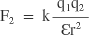 Ta thấy lực F2 tương đương với lực tương tác q1 và q2 khi chúng đặt trong chân không cách nhau một khoảng r sao cho: