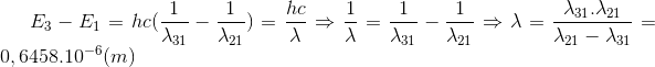 Hai vạch có bước sóng dài nhất trong dãy Laiman ứng với sự chuyển mức năng lượng E