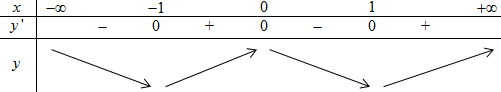 Cho \(y' = 0 \Rightarrow 8x\left( {{x^2} - 1} \right) = 0 \Leftrightarrow \left[ \begin{array}{l}x = 0\\x = - 1\\x = 1\end{array} \right.\).