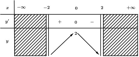 + \(y' = \dfrac{{ - 2x}}{{2\sqrt {4 - {x^2}} }} \Rightarrow y' = 0 \Leftrightarrow x = 0\)