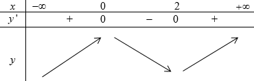 Ta có \(y = {x^3} - 3{x^2} + 2\) có đạo hàm là \(y' = 3{x^2} - 6x = 0 \Leftrightarrow \left[ \begin{array}{l}x = 0\\x = 2\end{array} \right.\)