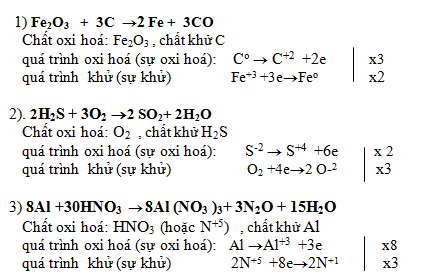 (xác định số oxi hoá, nêu rõ chất khử, chất oxi hoá, sự khử, sự oxi hoá , sau đó cân bằng).