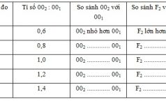 Tỉ số F2/F1 giảm khi tỉ số 002/001 tăng và ngược lại.