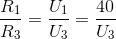 Theo mạch điện như hình 4, ta có : U1 = U – Uv = 200 – 180 = 40V. Vì vôn kế V có điện trở rất lớn nên dòng điện chạy qua nó rất nhỏ, ta có thể bỏ vôn kế. Khi đó, R1 nối tiếp với R3 do đó, ta có :
