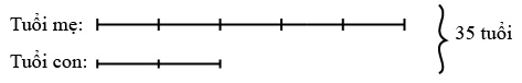 Hiện nay tổng tuổi của 2 mẹ con là 35 tuổi. Tuổi con bằng \(\frac{2}{5}\) tuổi mẹ. Tính tuổi con cách đây 2 năm.