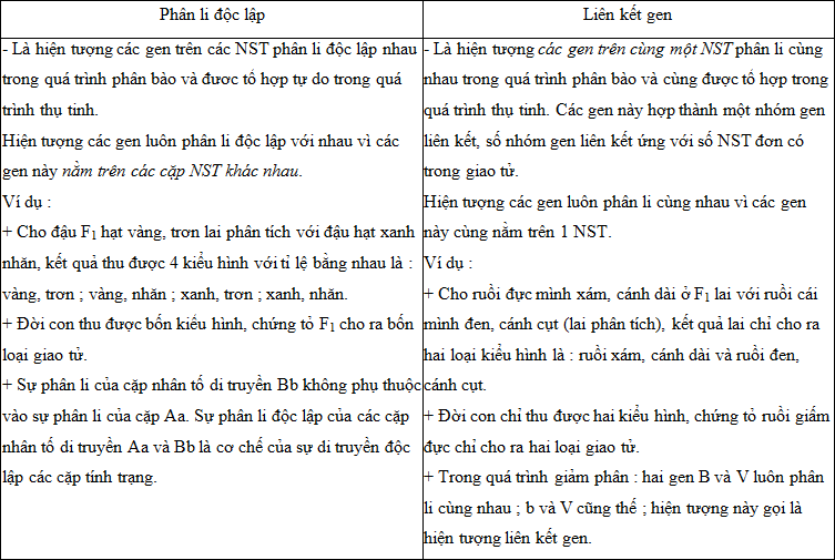 Hiện tượng phân li độc lập và liên kết gen khác nhau như thế nào ?