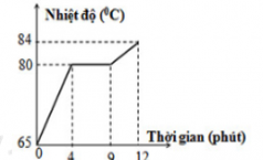 Hình vẽ bên vẽ đường biểu diễn sự thay đổi nhiệt độ theo thời gian của một chất rắn.