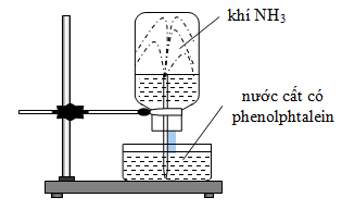 Hình vẽ sau mô tả thí nghiệm về tính tan của NH3 (ban đầu trong bình chỉ có khí NH3, chậu thủy tinh chứa nước cất có nhỏ vài giọt phenolphtalein):