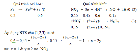 Hòa tan hoàn toàn 11,2 gam Fe vào HNO3 dư, thu được dung dịch A và 6 72 lít hỗn hợp khí X gồm NO và một khí X, với tỉ lệ thê tích là1:1. X là