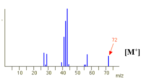 Từ phổ khối lượng ⟹ MX = 72 (g/mol)
