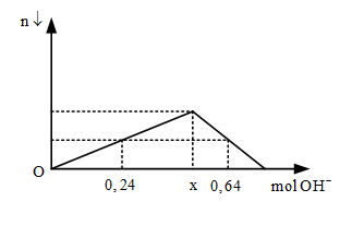 Do số mol Al(OH)3 ở 2 thời điểm này bằng nhau nên:(x-0,24)/3=0,64-x=>x=0,54=> Đáp án B