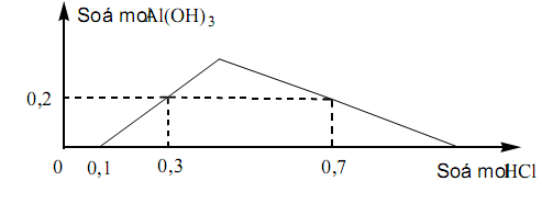 Khi nhỏ từ từ đến dư dung dịch HCl vào dung dịch hỗn hợp gồm x mol Ba(OH)2 và y mol Ba[Al(OH)4]2 (hoặc Ba(AlO2)2), kết quả thí nghiệm được biểu diễn trên đồ thị sau: