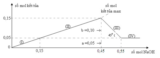 - Tổng số mol kết tủa max là 0,15 mol => x = 0,15´3 = 0,45. mol