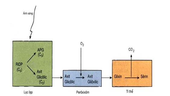 (1) Hô hấp sáng xảy ra khi cường độ ánh sáng cao, lượng CO2 cạn kiệt, lượng O2 thấp.