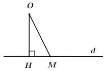- Sử dụng định lí đường vuông góc và đường xiên, chứng minh \(d\left( {O;d} \right) \le OM\). Dấu “=” xảy ra \( \Leftrightarrow OM \bot d\).